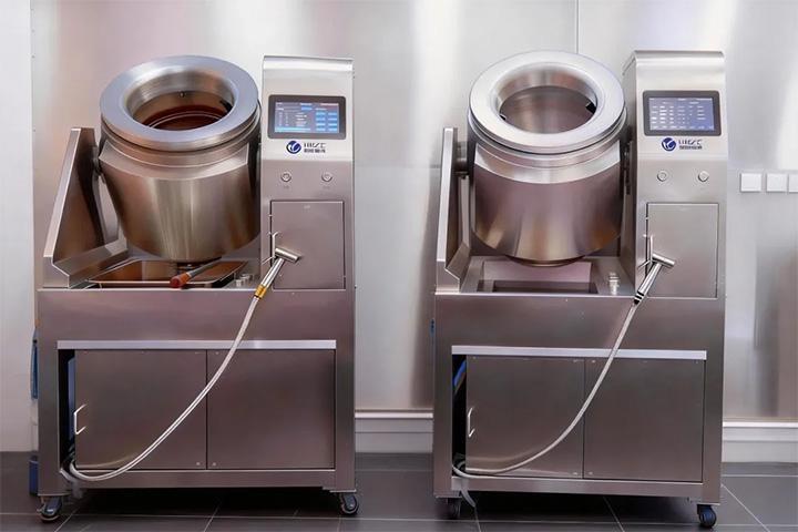 智能炒菜机、自动炒菜机自动控温,自动翻炒,自动加料……智能学习功能,高仿真语音实时播报机器烹饪状态,可存储1000+道菜谱,1名厨师同时操作2-3台,菜肴出品统一标准化,节省高额厨师成本!